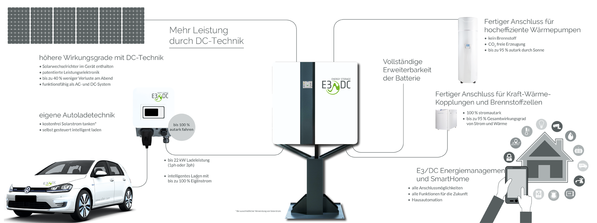 Ein Energiespeicher wird in Kombination mit einer Photovoltaikanlage verbaut. Das Funktionsprinzip ist relativ simpel. Der erzeuge Strom aus Ihrer Photovoltaikanlage wird zunächst für den Eigenverbrauch des Gebäudes verwendet, ein möglicher Überschuss lädt den Speicher auf. Ist der Speicher aufgeladen wird der Überschuss an den Netzbetreiber Verkauft. Je nach Einstellung und System, kann aus dem Speicher der gesamte Hausverbrauch, die Heizung oder das Elektro-Fahrzeug betrieben werden.